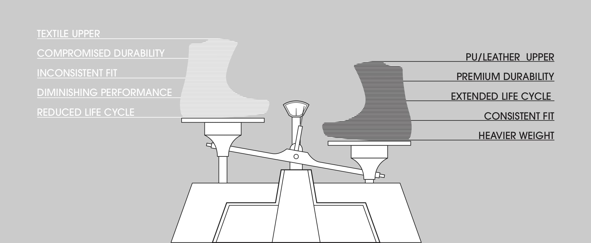 Lightweight comes at a cost. With traditional boot construction the easiest way to reduce weight is by replacing heavy durable materials with lighter substitutes. While lighter is better, the compromises in construction greatly reduces boot lifespan, fit and performance.